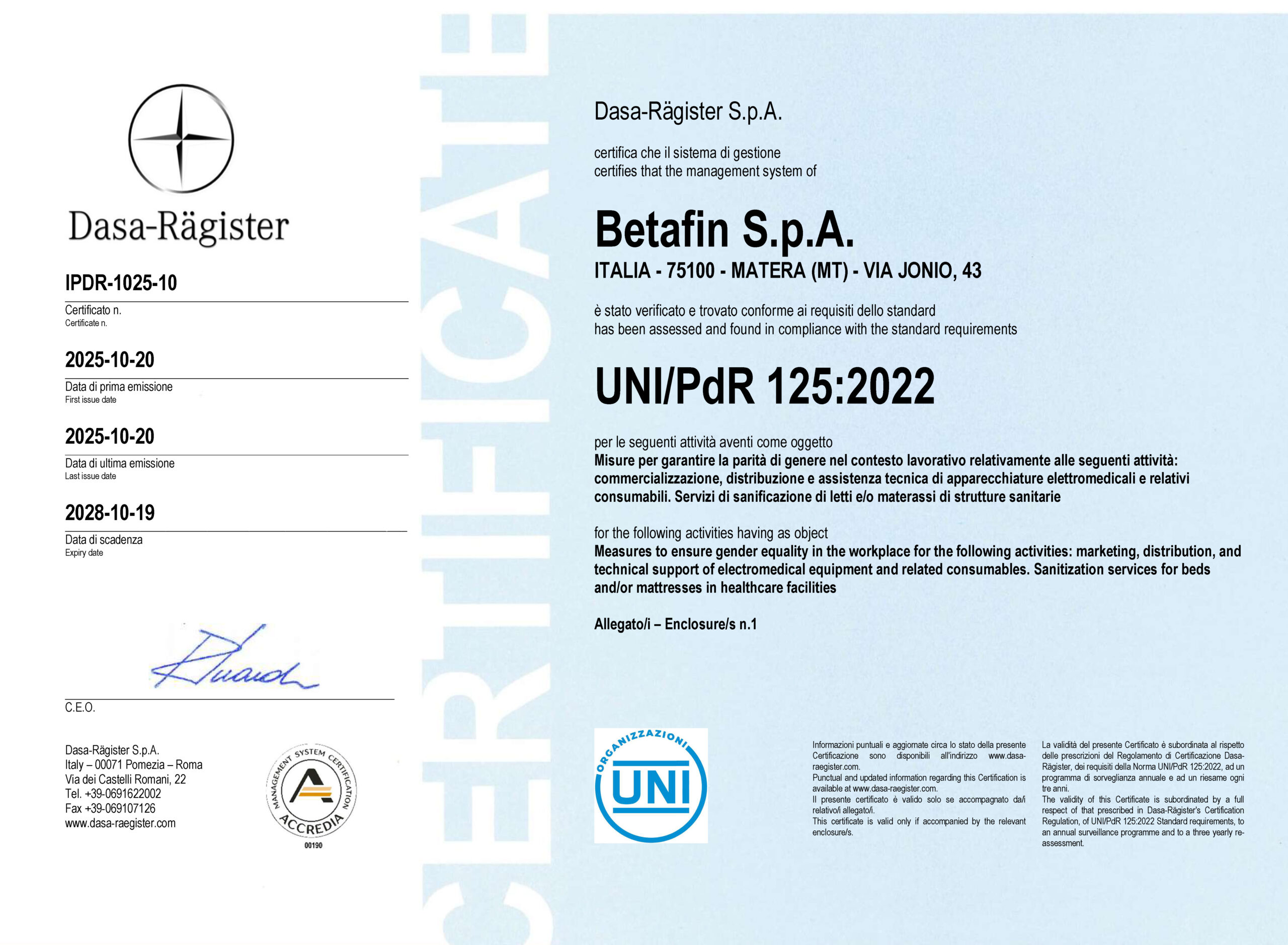 Betafin S.p.A. was founded in the late 1970s as a service company in the construction and integrated health services sector with a high level of specialisation.